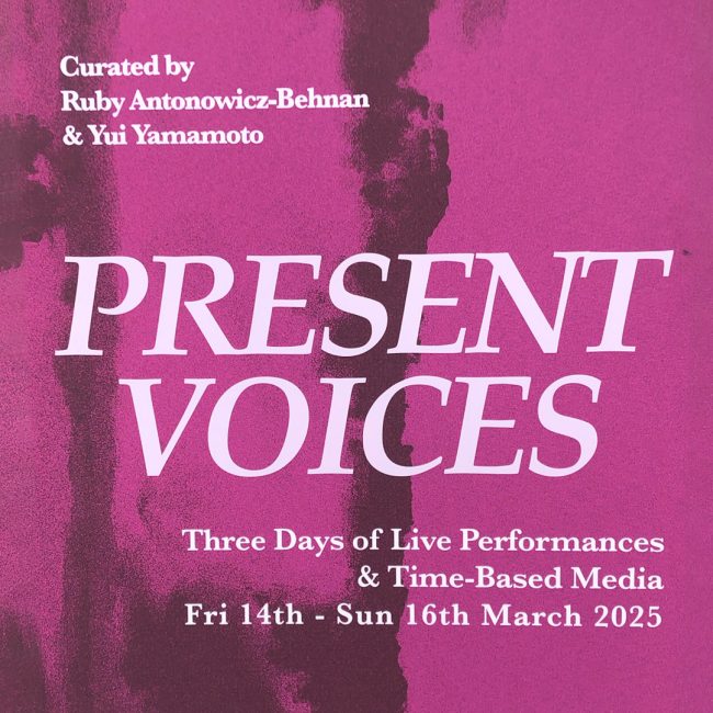 14>16th March 2025… We took part in a group show curated by Yui Yamamoto (@ugly_society_lover) and Ruby Antonowicz-Behnan (@rubyantonowiczbehnan), @present_voices, which saw a coming together of dynamic, studied performance pieces along side time based media and interactive works. More or less all the work complied for the weekend was the result of partnership.