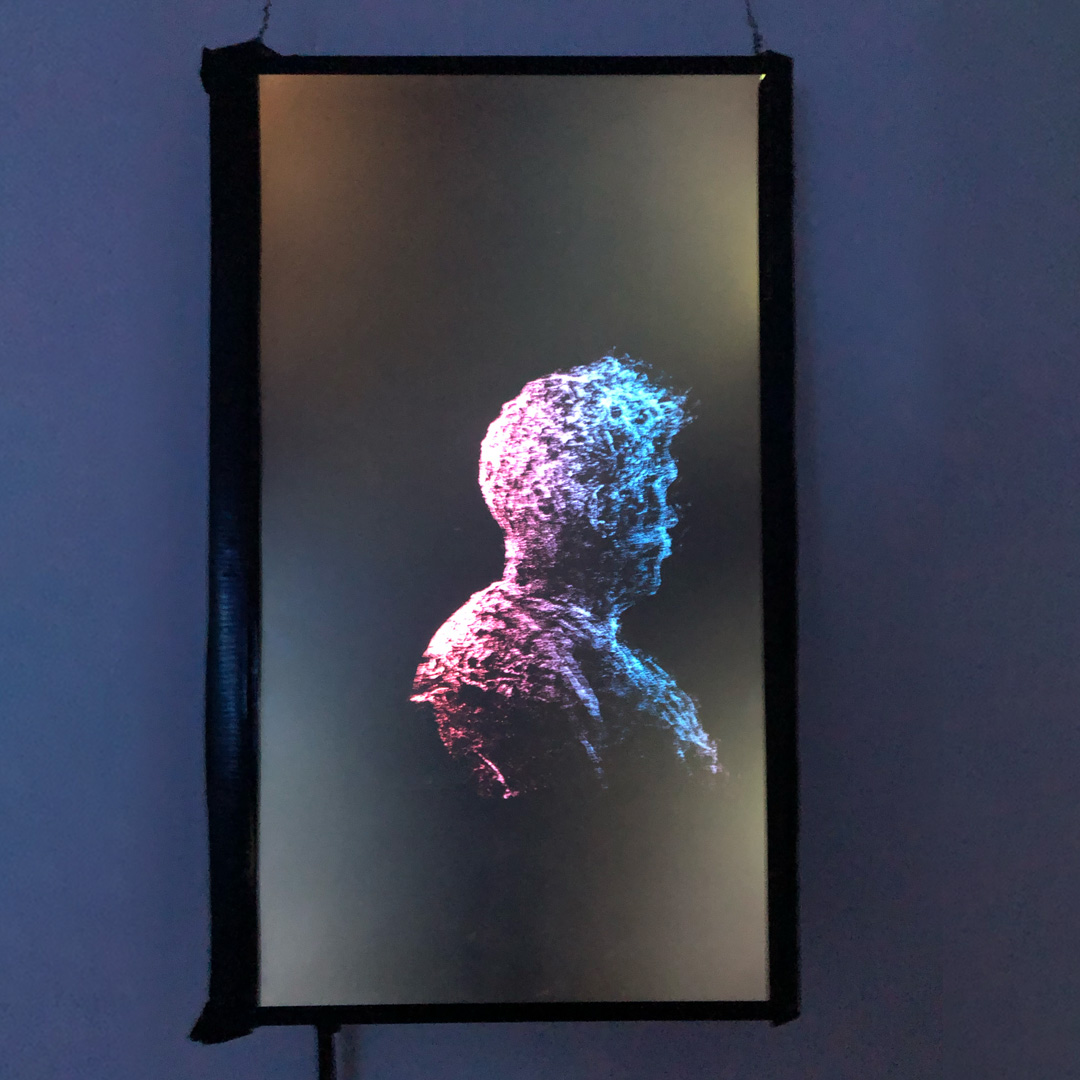 The interaction enabled sliding between point cloud portraits of us and volumetric manipulation of the images. An Akai MIDIMix was made available with just the 9 sliders exposed, each slider enhanced or destroyed our portraits.
