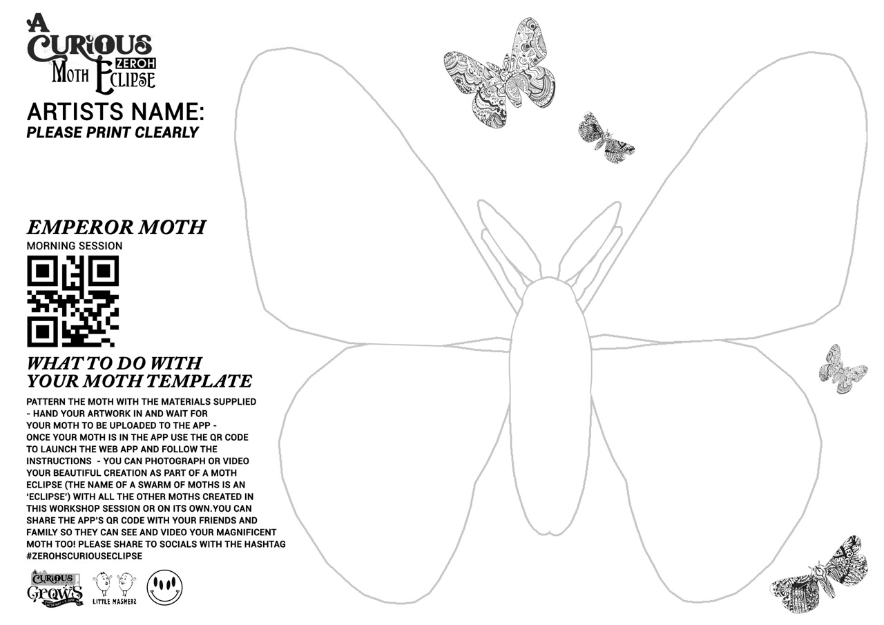 Our idea was to create a spectacle for the children to contribute to by way of patterning/ colouring in the wings of moths that we then animated to create a swarm, or an eclipse as they collectively known, of fluttering Moths giving the children the opportunity to identify their design within the animation.